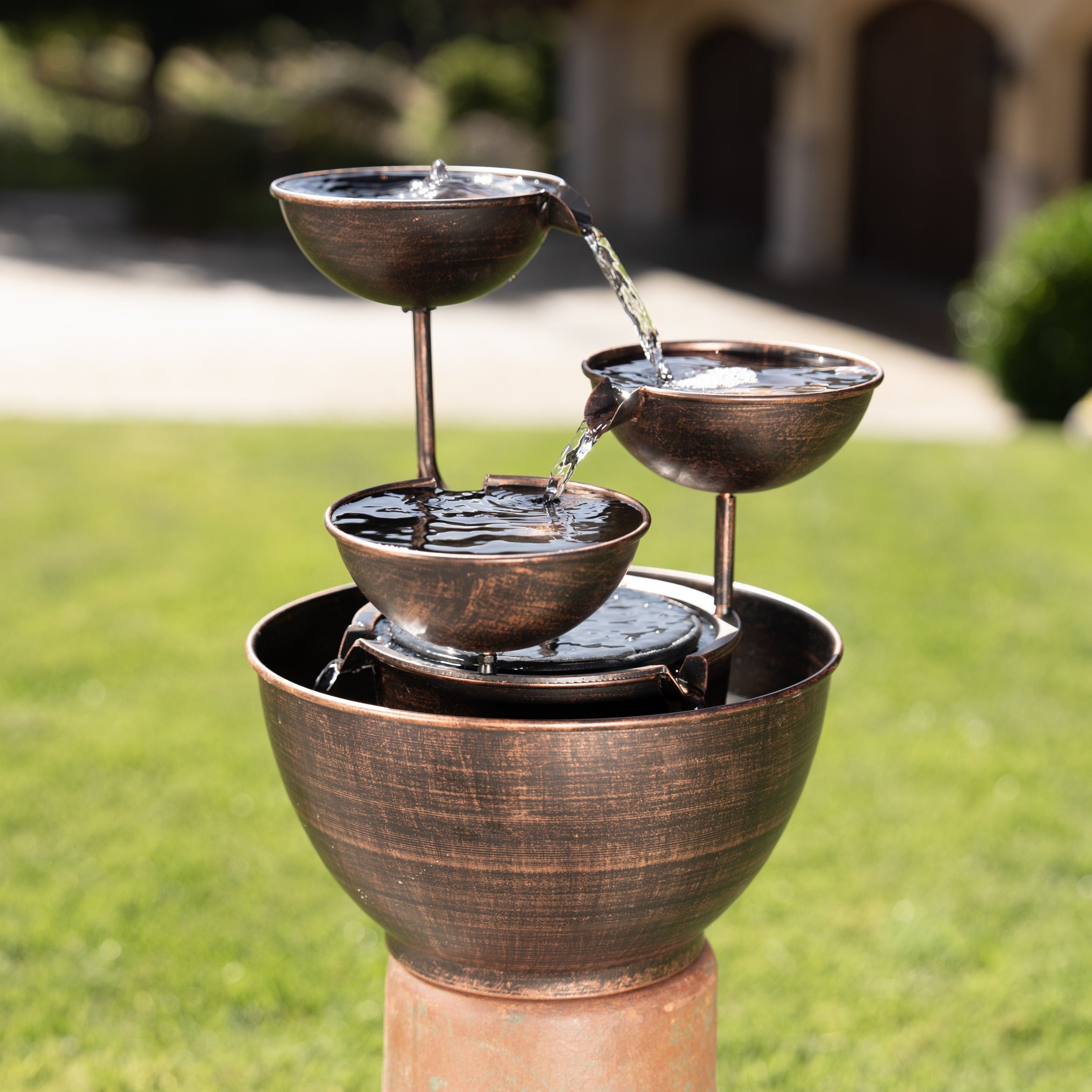Add a touch of charm and serenity to your garden with this three-tiered metal fountain. The cordless design and timer function make it easy to enjoy the fountain's beauty and tranquility. From Bernini.