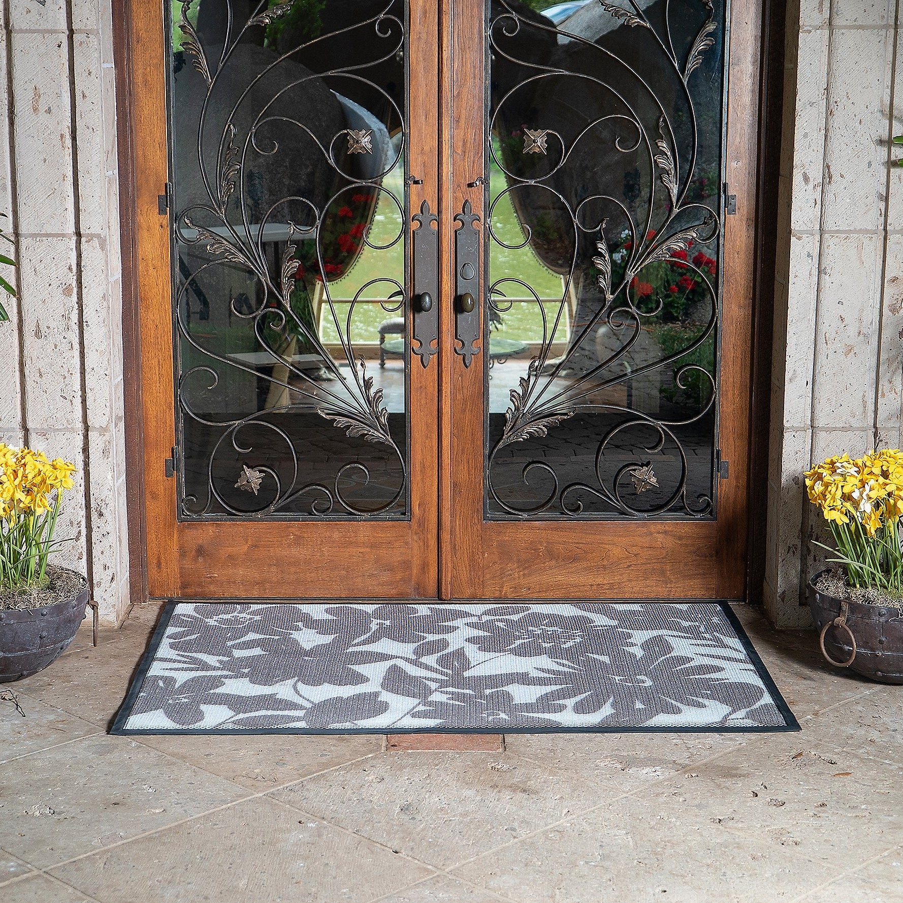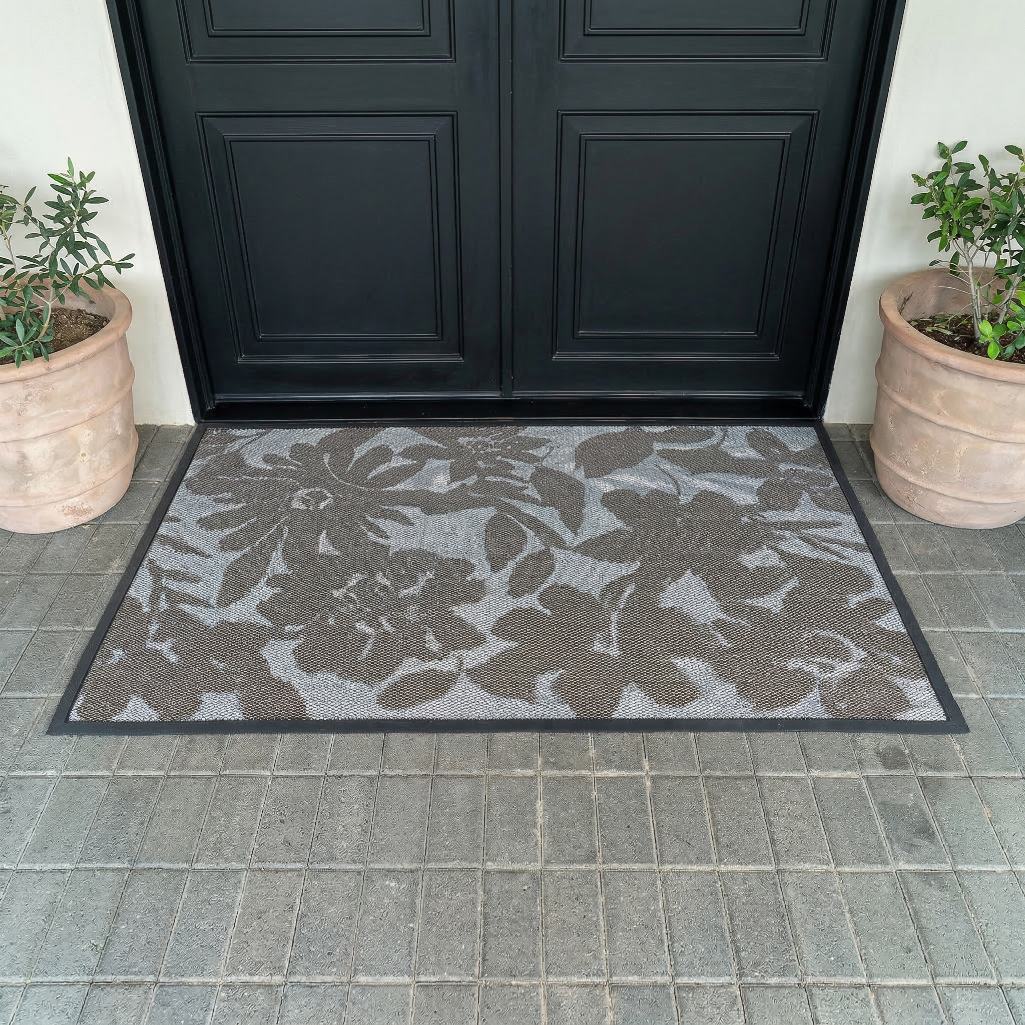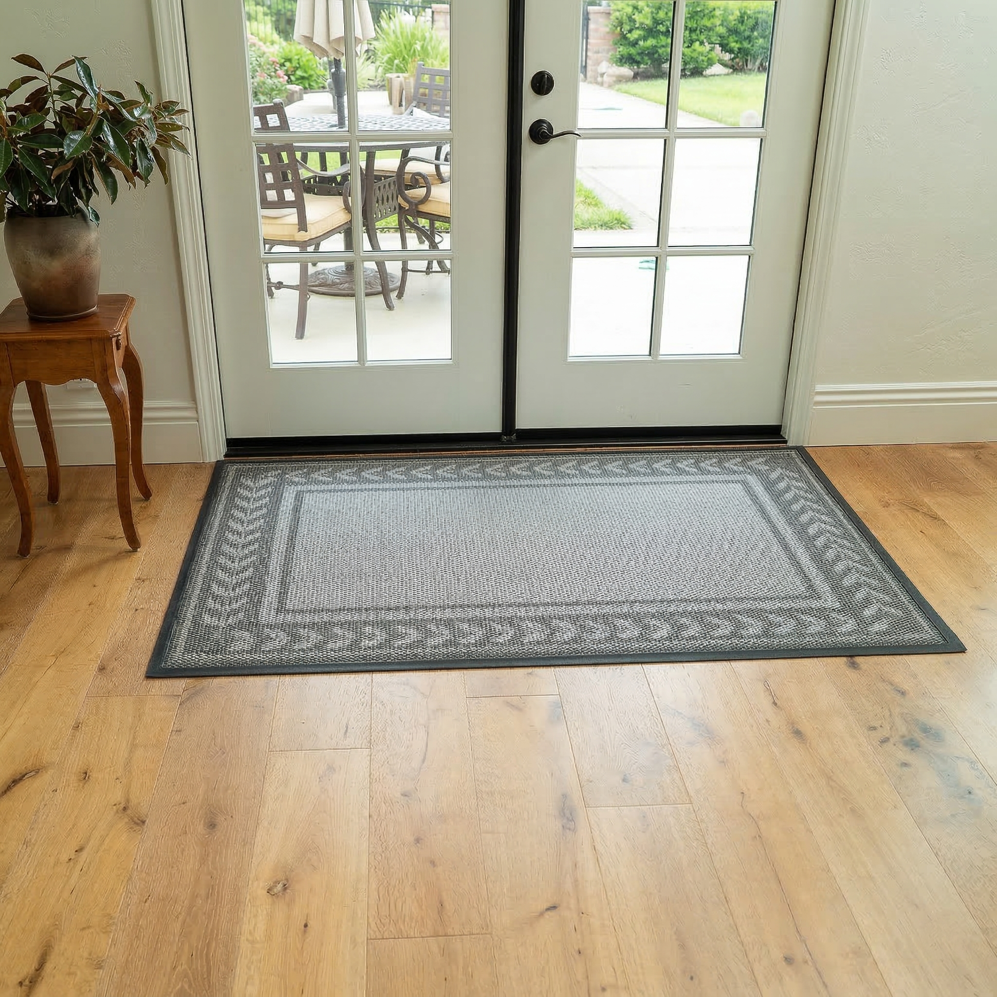 The Aqua-Terra’s triple-layer construction ensures rain and moisture disperse rather than pooling into a muddy puddle. The low-profile design means your doors will glide right over it without catching, while the heavy-duty, weighted rubber border keeps the mat firmly planted across large surface areas. Perfect for double doors, wide French doors, expansive patio sliders, or full mudrooms, it provides a massive, cushioned, anti-fatigue landing spot that keeps your home's floors cleaner than ever.