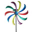 A wind spinner that doesn't require wind? That's right! The Bernini Windless Wind Spinner will continue to liven up your yard with movement and beauty on the calmest sunny days. This beautiful 22" diameter wind spinner has a specially designed clutch that allows it to spin freely in the wind, but when the wind dies down, a solar panel kicks in to provide power and keep the spinner going. Add a bright burst of color to your yard with this stunning 74" tall wind spinner in your choice of three color options - Primary, Metallic, or Peacock. 5 spikes keep it anchored to the ground.