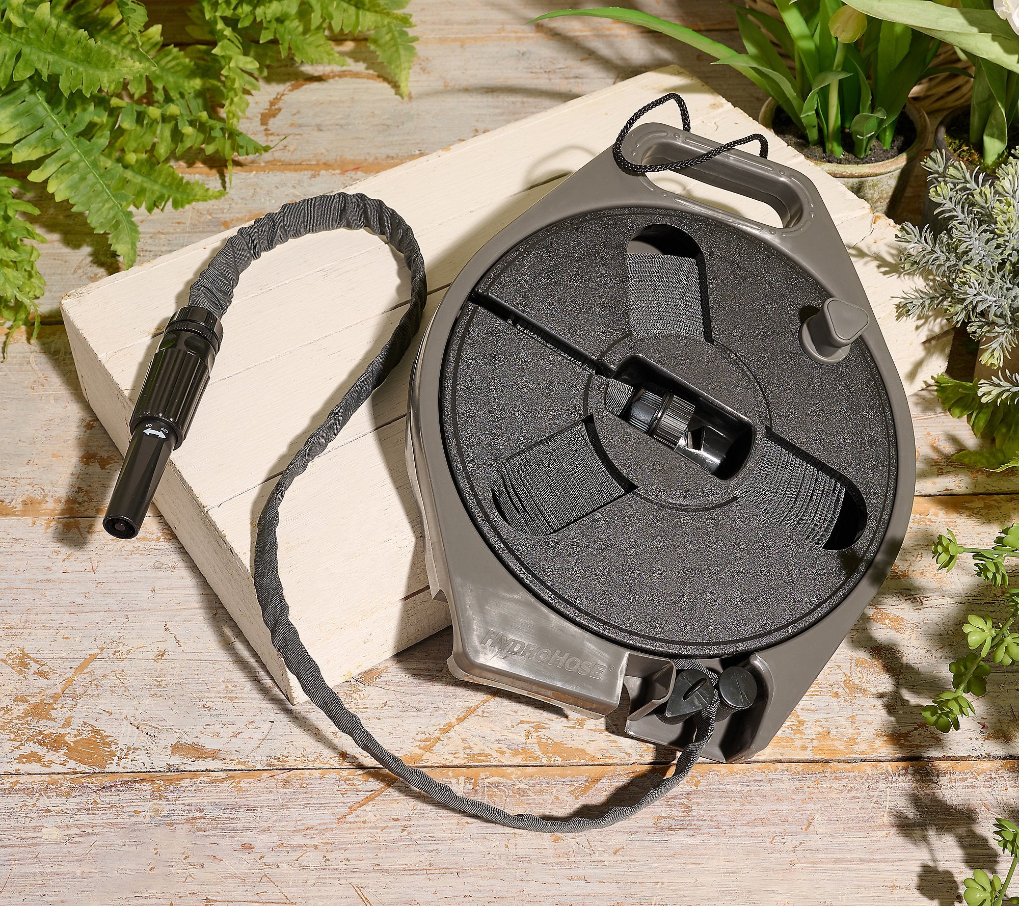 Because this hose drains and flattens completely when not in use, a full 40-foot length fits neatly into a reel that is a fraction of the size of traditional units. When you are finished watering, simply turn the face-mounted crank handle to wind the hose back into its protective shell in seconds.
