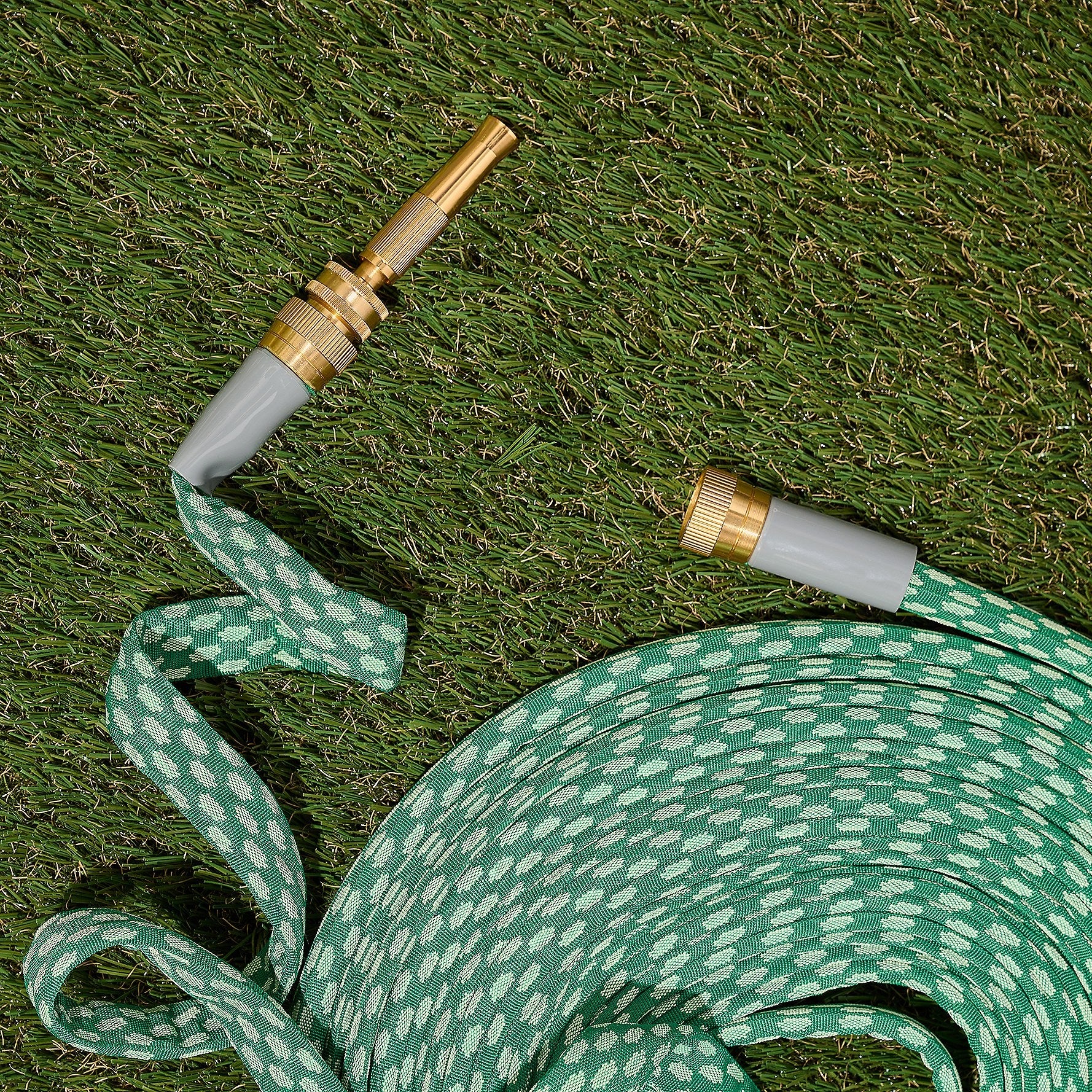 The Bernini HydroHose utilizes "Flat Fire Hose" technology, meaning it lays completely flat when not in use but expands into a full-capacity round hose the moment you turn on the water. This smart design allows a 50-foot hose to roll up into a remarkably small footprint, saving you valuable shed space while delivering a consistent, high-pressure flow.
